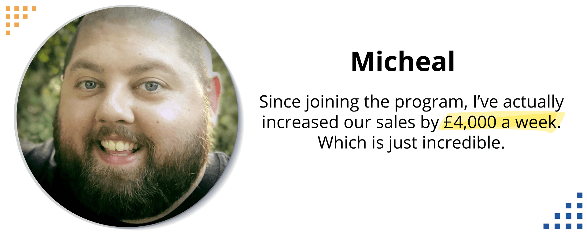 "Since joining the program, we've increased our sales by £4K ($5.6K) per week. If you get the chance to work with Luca, I highly recommend it."